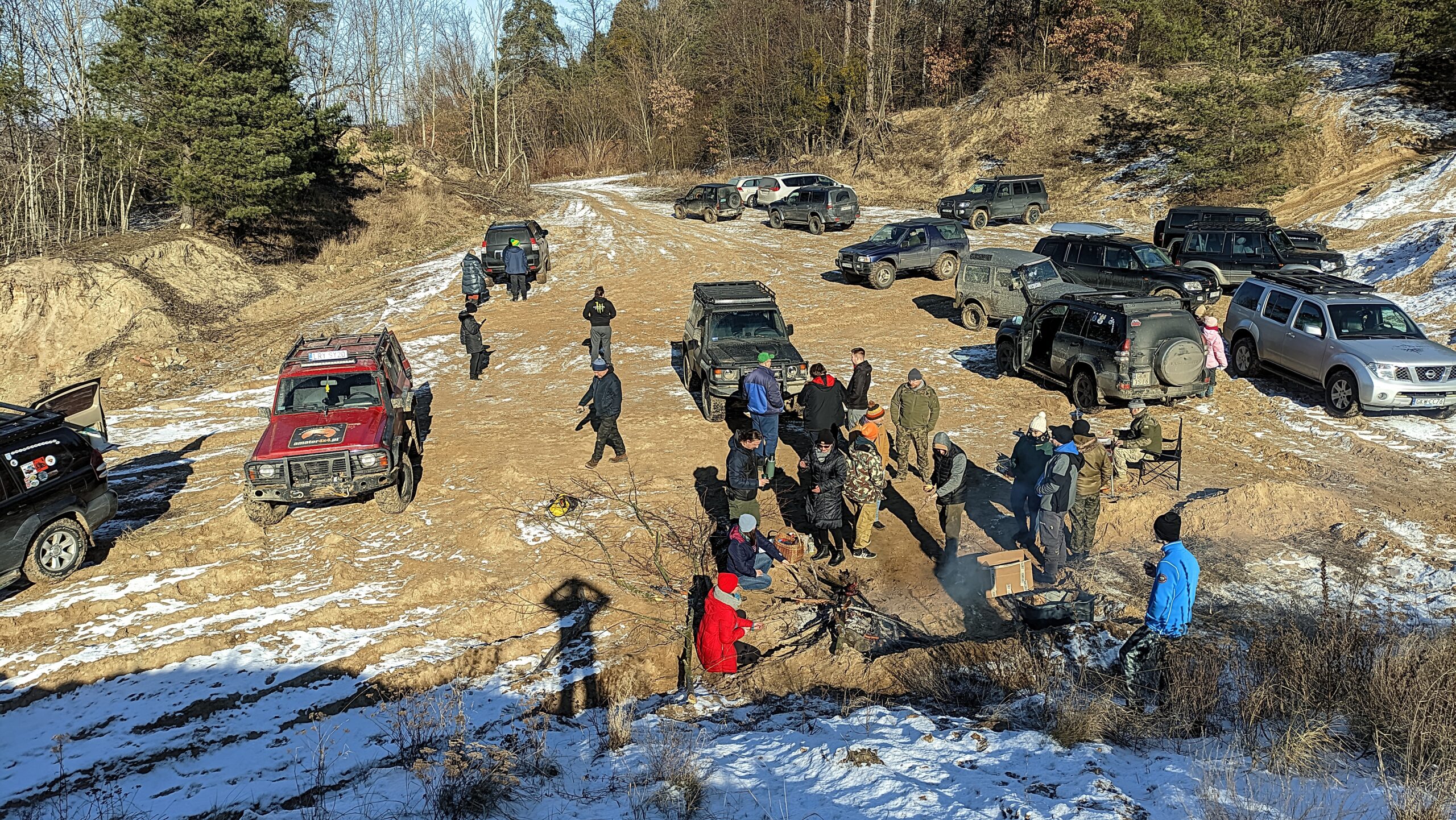 16 lutego spotkaliśmy się na piaskowni w Rozpędzinach, gdzie odbyły się warsztaty z jazdy autami 4×4. Testowaliśmy nasze taczki z różnymi systemami 4×4, redyktorami, blokadami (międzyosiowymi, tylnymi, przednimi), z silnikami stockowymi i swapowanymi. Doskonaliliśmy nasze umiejętności jazdy na śniegu, żwirze i piasku, pod strome wzniesienia, cofania ze stromych podjazdów oraz operowania wyciągarką i linami.